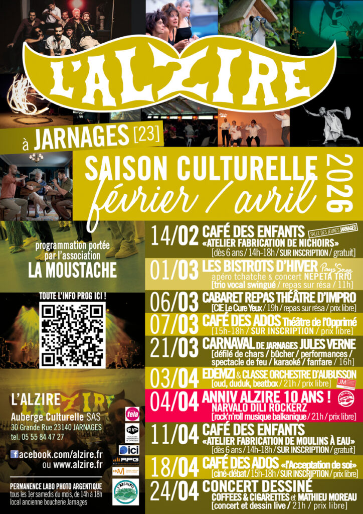 Agenda Alzire : https://www.alzire.fr/evenements/