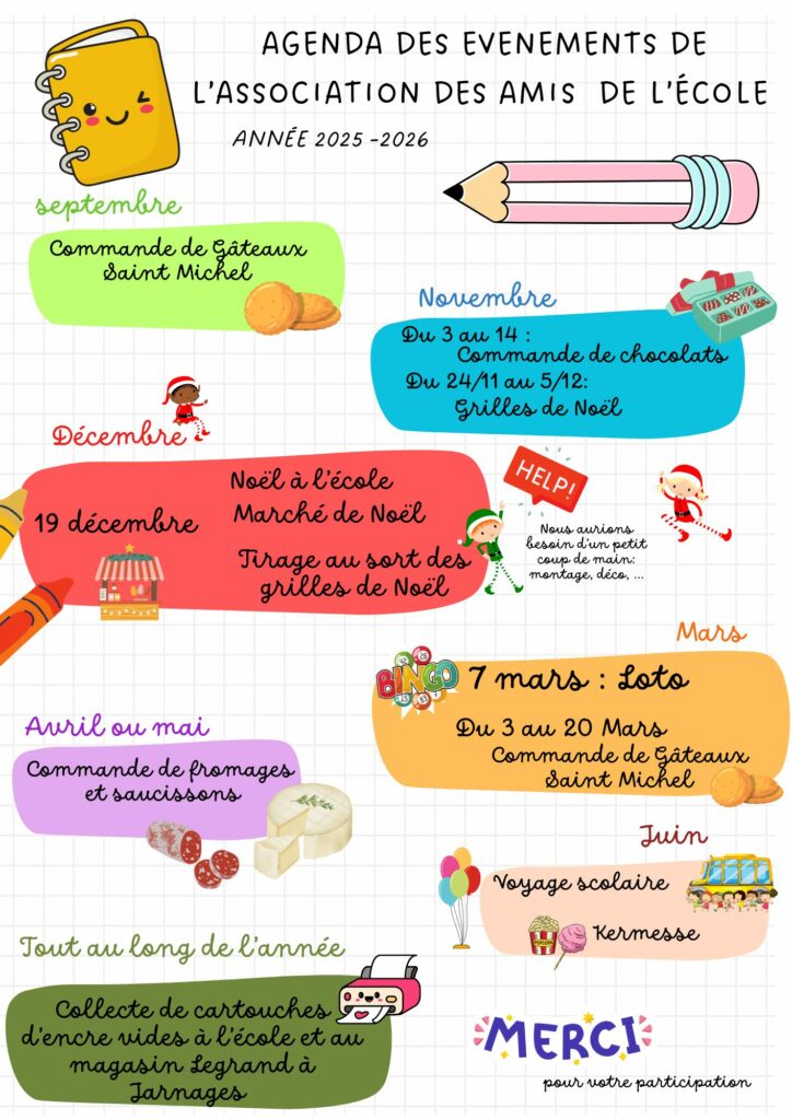 LES AMIS DES ECOLES – Président : Monsieur LARERE Matthieu – amis.ecole.jarnages@gmail.com